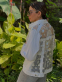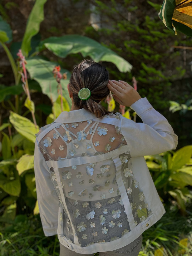 ترکیب لطافت و جسارت که گل ها به تور دوخته شدن. جنس جین درجه یک با دگمه جلو. قابل شستن با ماشین.