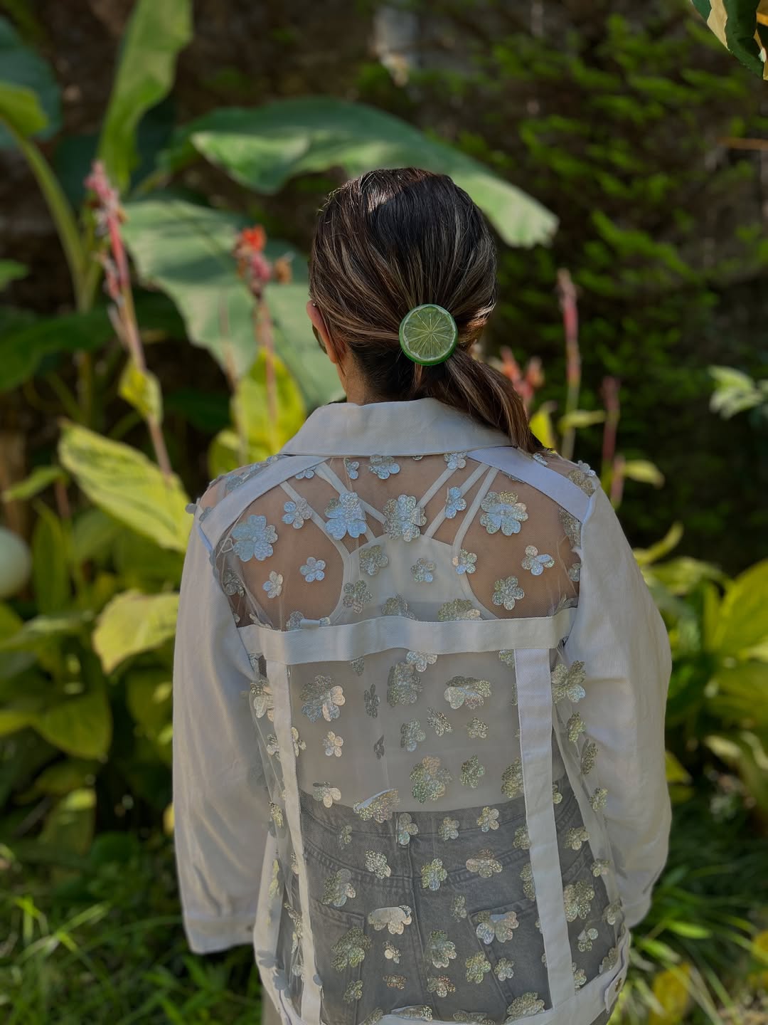 ترکیب لطافت و جسارت که گل ها به تور دوخته شدن. جنس جین درجه یک با دگمه جلو. قابل شستن با ماشین.