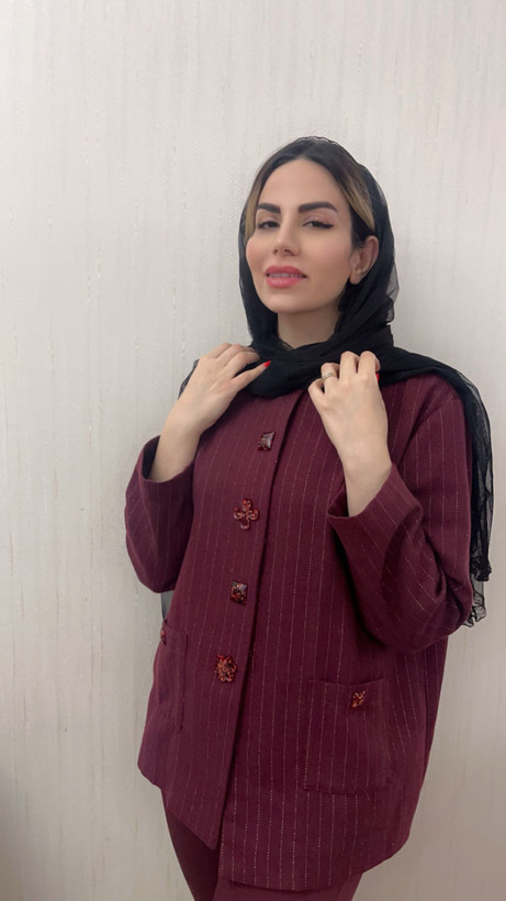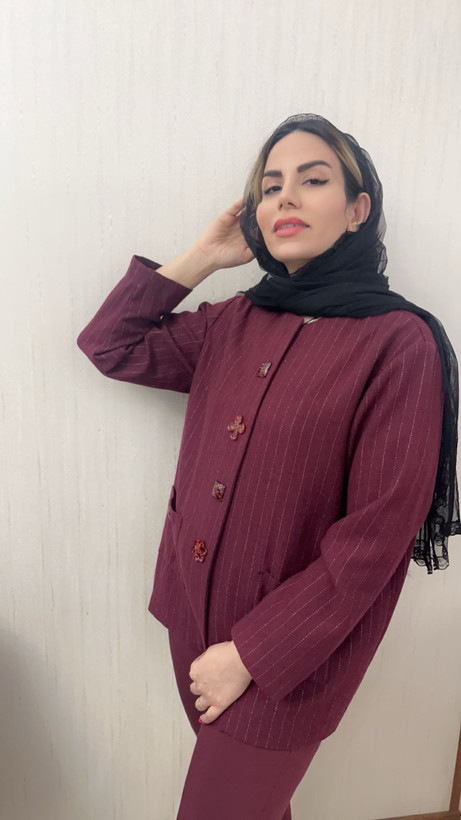 کت پشمی طراحی گالری بی تی با اکسسوری رزینی